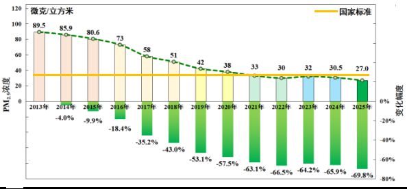 2025年,PM2.5年均浓度首次“破30”,多项指标创有监测以来最优