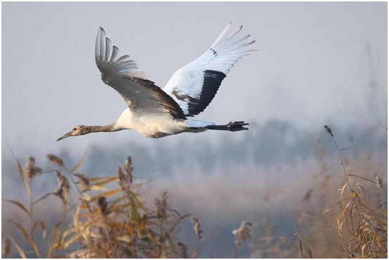 丹顶鹤属于大型涉禽,是我国鹤家族中的大型鹤类,性机敏,偏好洁净而开阔的湿地,是对湿地环境变化非常敏感的指示生物。