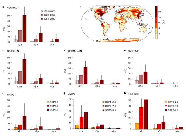 2021年的极端气候事件大大打破了长期以来的纪录。冬季风暴“乌里”袭击了北美大部,北美多地最低气温突破历史极值。在全球范围,多个国家和地区出现异常高温,北半球处在极端高温的炙烤中。瑞士研究人员2021年对破纪录热浪概率随全球变暖而变化的研究结果表明,在高排放情景下,2021-2050年破纪录极端热浪的发生概率是过去30年间的2~7倍,2051-2080年会是3~21倍。在北半球中纬度地区,2051-2080年这些事件将会每6~37年一遇。美国耶鲁大学2021年的一项研究预测,21世纪的热带气旋(飓风和台风)可能会在比过去300万年更大的纬度范围内发生,在中纬度地区可以发现更多的热带气旋。这一发现意味着热带气旋在全球变暖中会带来更高的风险。2021年在美国康涅狄格州登陆的飓风“亨利”可能是此类风暴的前兆。