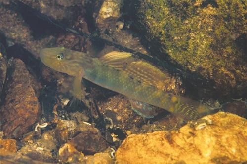 乌岩岭吻虾虎鱼,广泛分布于飞云江和瓯江下游水系。它的雄鱼色彩鲜艳,是著名的浙江特有原生观赏鱼类。此次在温岭市城东街道,调查队发现它们存在于独立入海的小水系上游溪流中,也是一项比较重大的记录。
