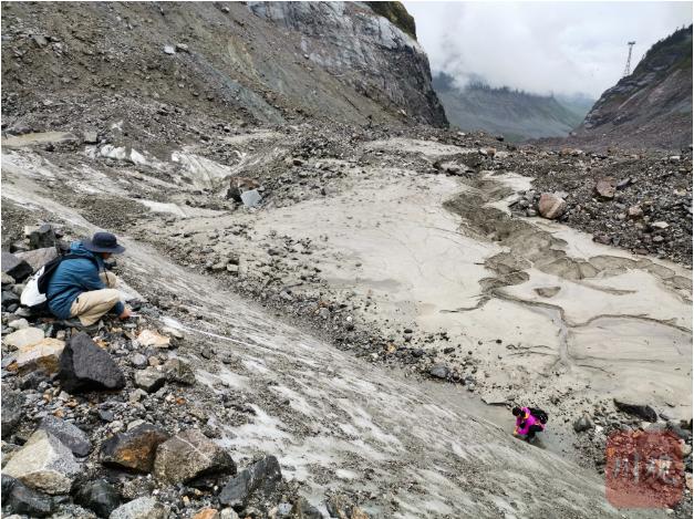 中科院成都山地所的科研工作者在冰川上开展研究。受访者供图