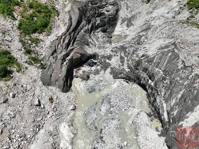 眼前,冰川正在融化,途经的冰洞口,还有正在滴落的融水,冰崖顶部不时有碎石滑落……这里的冰川并不是想象中的冰蓝洁白。科学家们把冰川消融区形象地称为“冰舌”。海螺沟的独特之处,在于冰舌深入到了森林线以下,形成了冰川与森林交互的独特景观。冰舌表面基本被侵蚀搬运携带的冰碛物所覆盖,外观呈现灰色。