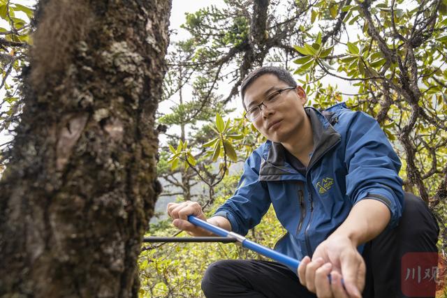 中科院成都山地所研究员王文志在采集冷杉的年轮样本。