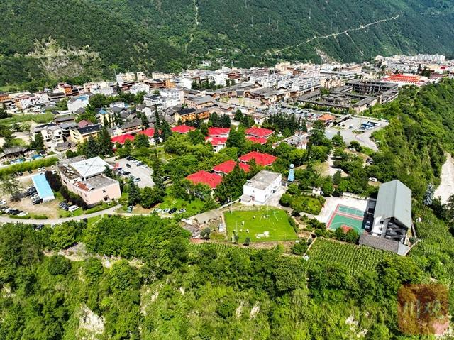 航拍位于磨西台地、海拔1600米的中国科学院贡嘎山高山生态系统观测试验站磨西基地站。