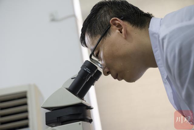 中科院成都山地所研究员王文志在成都的实验室内分析采集到的冷杉年轮样本。