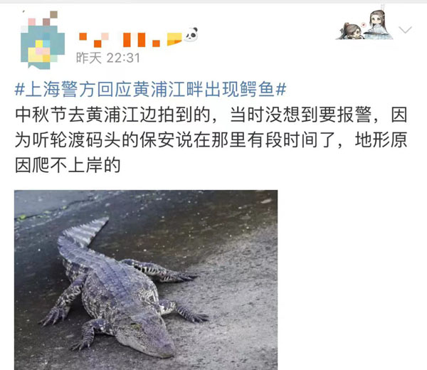 #上海警方回应黄浦江畔出现鳄鱼# 的词条冲上热搜