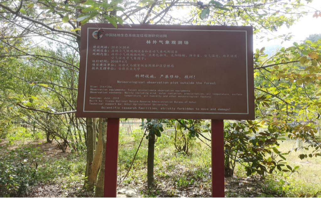 安徽天马自然保护区内国家定位观测研究站野外监测设施。