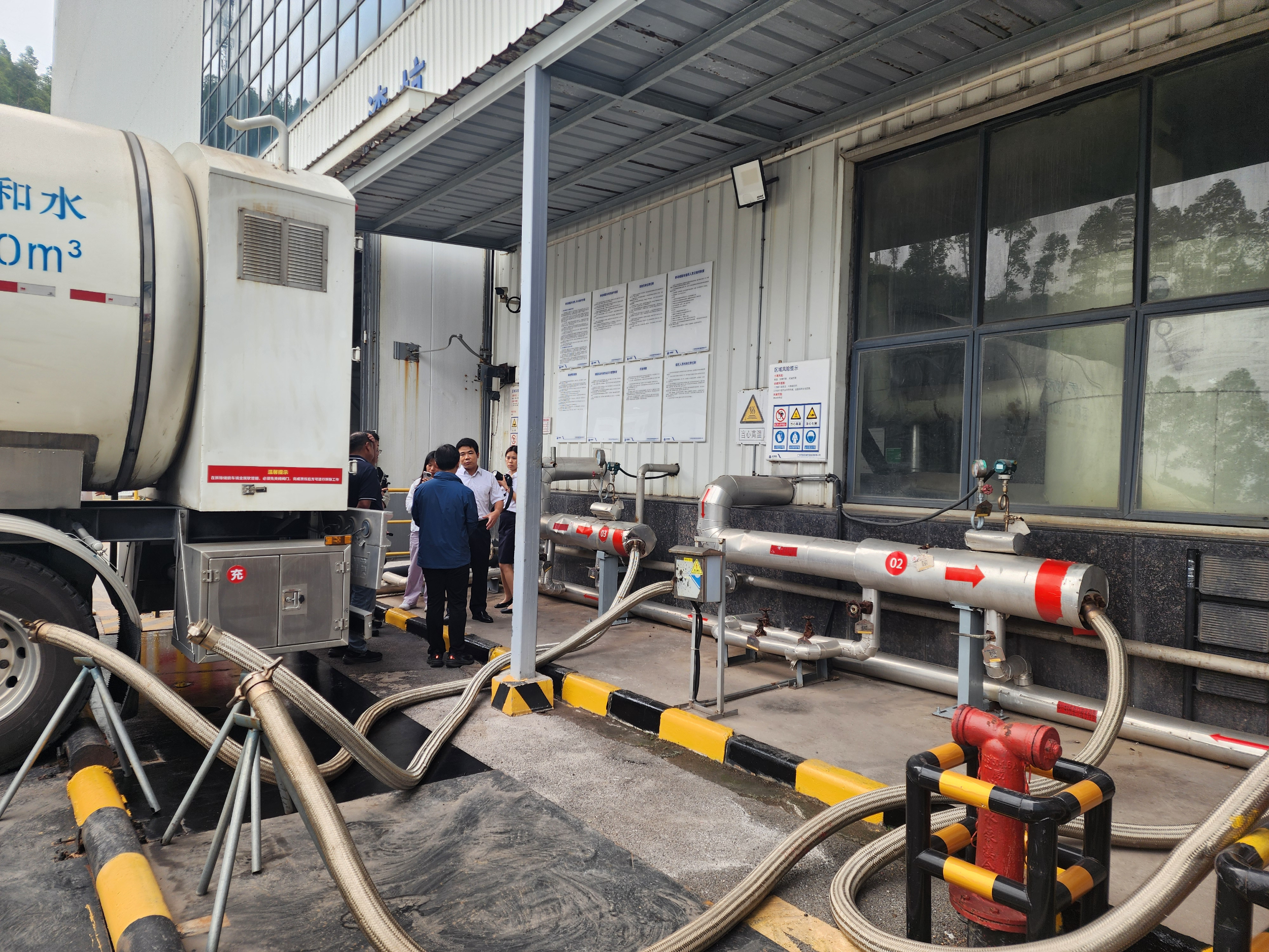 在环投花城公司现场,一项创新实践引人注目。广州首家“移动供热”项目在这里成功落地运营,形成“热源集中生产、热量分散供应”的灵活供能模式。该模式是将垃圾焚烧发电产生的富余清洁蒸汽,充装至具备高效保温保压技术的移动储能车(即移动供热车)中,然后将这些绿色热能安全运输至周边用热量中等、位置分散的工业企业。