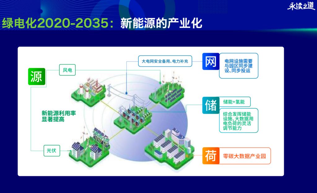 从时间维度上看,中国能源转型的上半场,是从现在到2035年的能源脱钩阶段。以风能、光伏等清洁能源为主体,建立新型电力系统,实现供给侧绿色化。下半场是2035年以后的产业新能源化阶段,将清洁能源深入应用于工业、交通、建筑等终端,实现需求侧绿色转型。