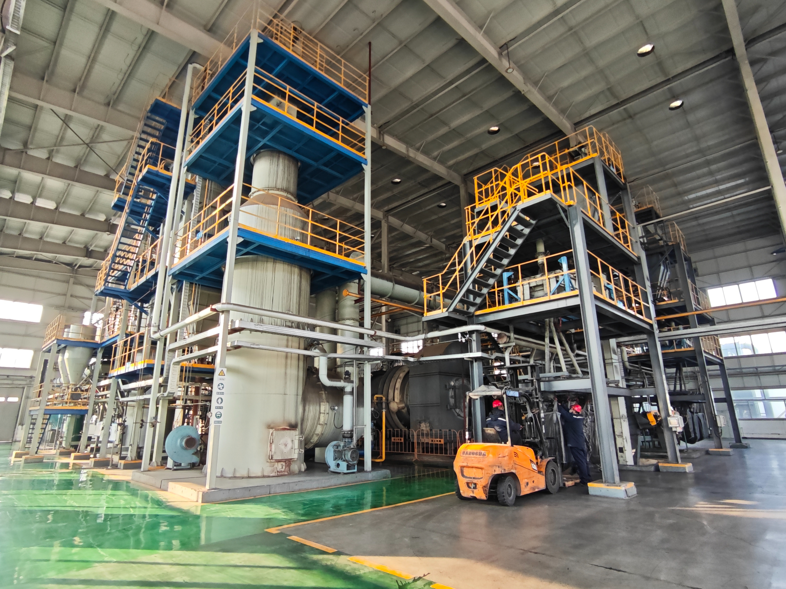 图为渤联绿岛基地废活性炭再生生产线一角。