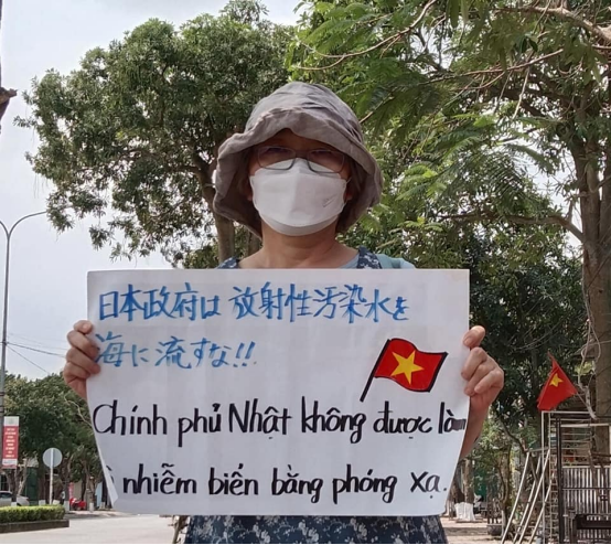 图为旅居越南的日本人抗议日本政府“排海”。图片源于网络。