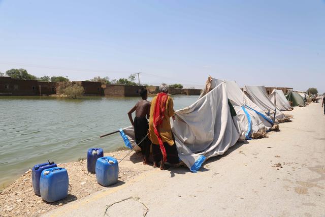 2022年9月2日,在巴基斯坦南部信德省受洪水影响的达杜地区,人们搭建临时帐篷。新华社发