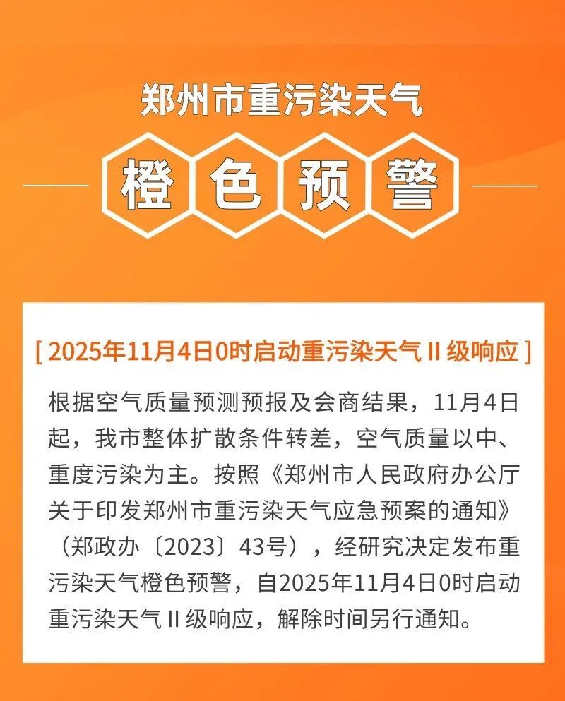 据河南省生态环境监测和安全中心预测,受不利气象条件影响,11月4日起,河南部分地区可能出现中度至重度污染风险。对此,河南郑州、洛阳、焦作、济源、濮阳、周口等地于11月4日0时启动重污染天气橙色(Ⅱ级)预警响应,解除时间另行通知。