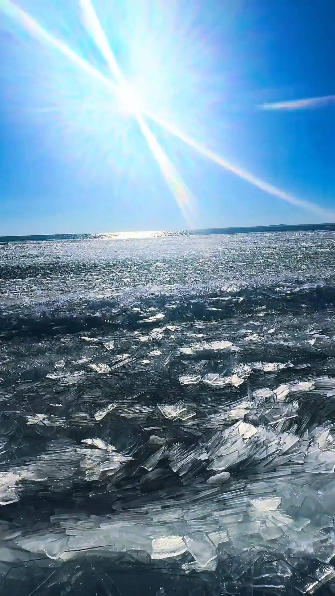 据视频画面显示,大量冰排相互簇拥、相互撞击,随着湖水不断向岸边漂来,湖岸边还堆积着不少大小不一的冰排,在阳光照射下仿佛堆叠在一起的透明玻璃碎片。在评论区有网友调侃称:“不是去不起赛里木湖,呼伦湖更有性价比。”