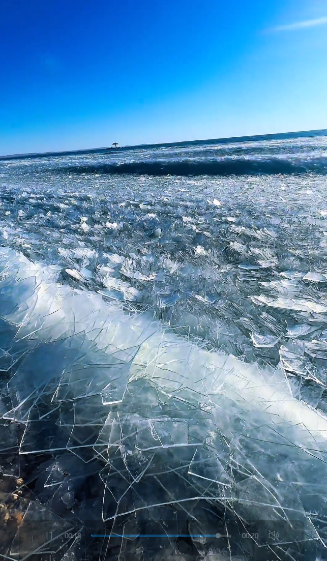 呼伦湖景区一名工作人员告诉极目新闻记者,“跑冰排”是呼伦湖的特色景观,每年湖面开始冰封和来年开春湖面融冰期间都会出现,“从现在到12月月底湖面完全结冰前,都有可能看到”,湖面结冰后,湖水被风吹动对冰层产生冲击,水流推动浮冰向岸边堆积从而形成“跑冰排”现象,“开春时的‘跑冰排’甚至可以堆到1米多高。”