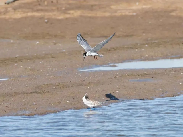 须浮鸥&黑翅长脚鹬。调查人员发现,七月下旬,在本地繁殖的白额燕鸥、环颈鸻和黑翅长脚鹬等迁徙水鸟的幼鸟已经在跟随亲鸟学习飞行、觅食等本领,即将向南方迁徙。在本地繁殖的东方大尾莺、棕扇尾莺等夏候鸟则进入了繁殖末期,已有集群行为,预期也即将离开横沙东滩,向南迁徙。主要在远东苔原地带繁殖的红颈滨鹬、黑腹滨鹬等鸻鹬类候鸟正沿“东亚-澳大利西亚迁徙路线”陆续抵达上海,预计该类群候鸟的过境高峰期将出现在八月中下旬,届时将有大量鸻鹬类水鸟在横沙东滩停歇并补充食物。