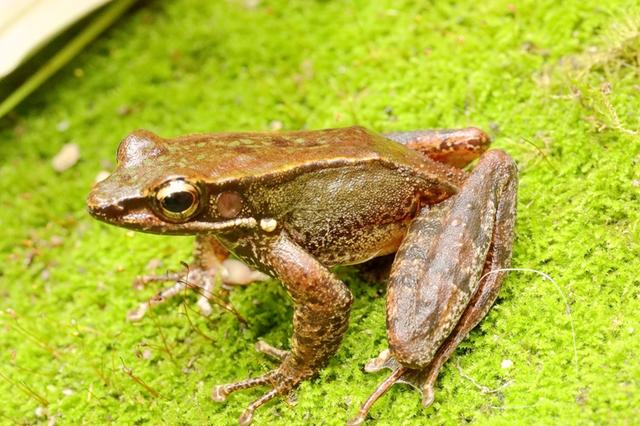 广西大明山国家级保护区发现的大明山竹叶蛙新物种。许为斌摄不断发现新物种是广西注重生态保护成效的体现,这些新物种进一步丰富了我国生物多样性本底资源,为生物多样性研究拓展了新空间。例如,石山油桐的发现,对油桐产业发展、油桐新品种培育、石漠化治理提供了新路径。全州樱花的发现为樱花观赏品种的矮化或新品种培育提供更多研究材料,也表明了该区域植物资源还有待更深入地挖掘与研究。都安薹草是广西岩溶地区特有物种,它的发现使薹草属植物的广西特有种从9种增加至10种,为广西植物区系地理研究提供了新资料。