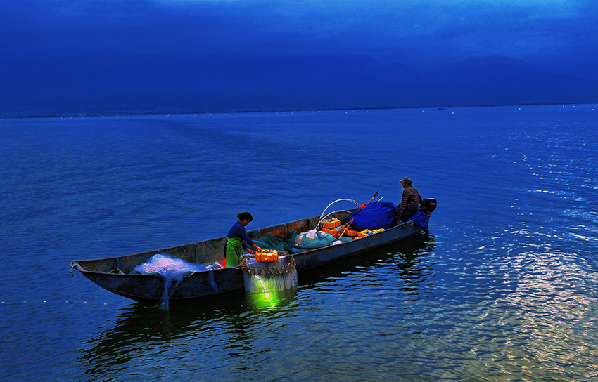 8月16日,2024年洱海鱼类第一阶段生态调控工作正式开启。夜幕降临,点点渔灯散落在洱海上,宛若天上的星星坠入洱海,“星光”璀璨,场面唯美壮观。