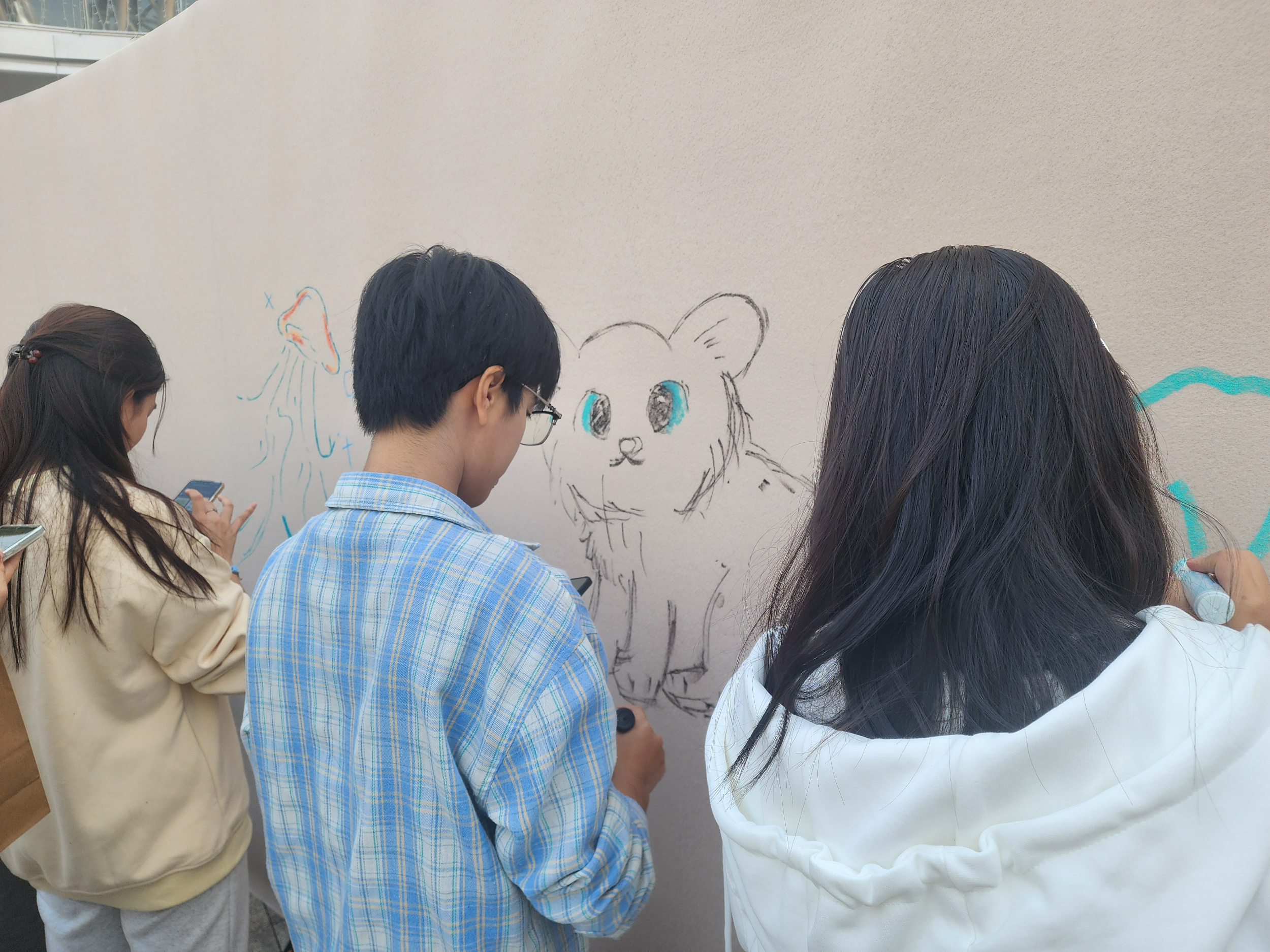 12月3日午后的广州塔广场,一幅大型雪豹画轴悬挂在弧形展墙中央,吸引了众人关注。生态艺术家赵文静站在脚手架旁,与来自华农、广财、广技和HFI华附国际部的学生一起为画轴补绘雪豹的斑纹与三江源的山脊线。就在画卷逐渐被点亮的过程中,“归源计划”在广州塔正式启动。