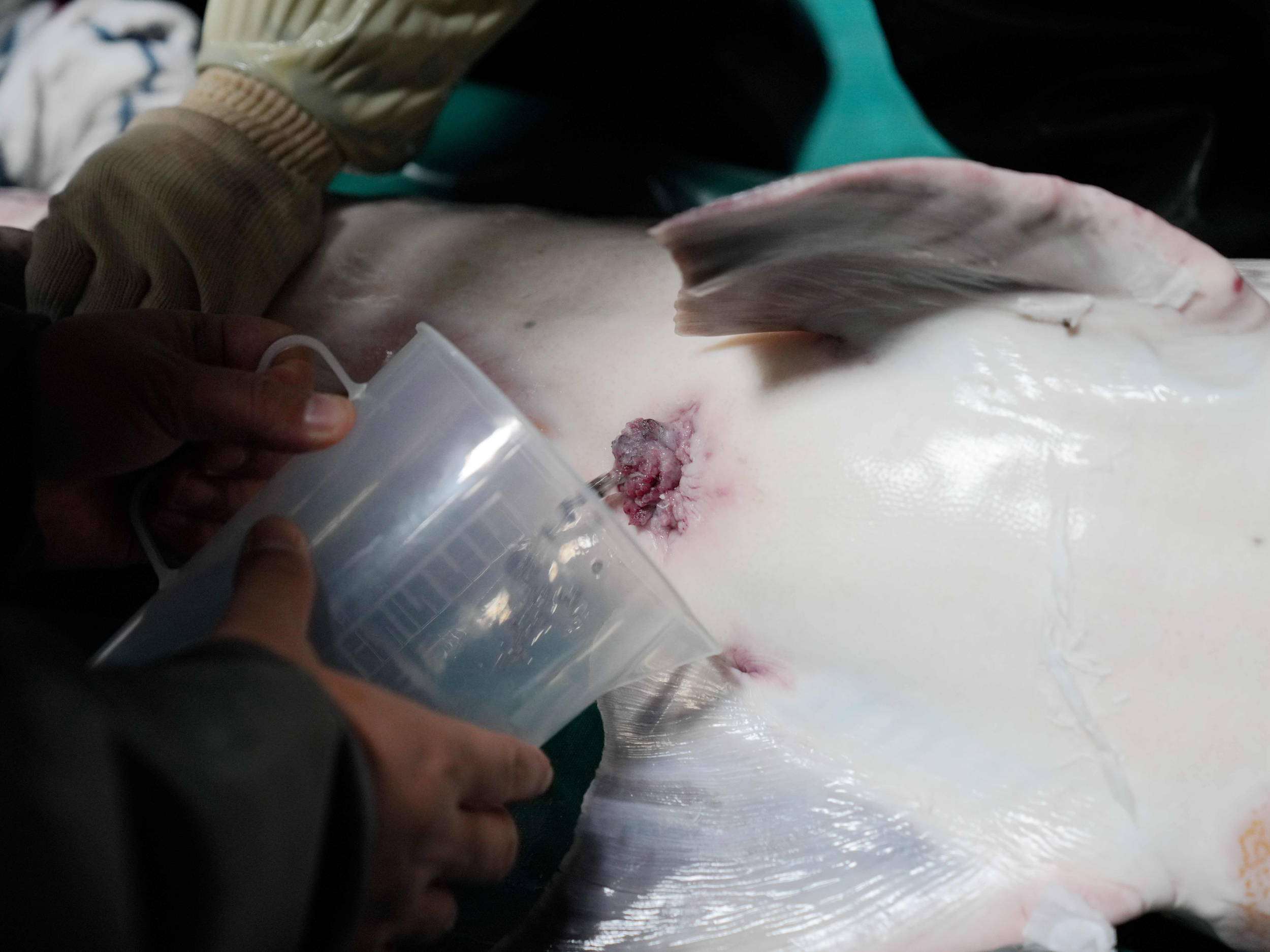“要想‘生’,必先“熟”,如何让子二代性腺发育成熟,是赢得这场‘存续之战’的关键。”郭柏福介绍,科研团队早在2025年年初启动了严苛的“造鱼计划”。他们从上千尾子二代群体中优中选优,挑选出体格强健、发育良好的“种子选手”。而此次参与繁殖的“功勋父母”是保育中心自主培育的子二代中华鲟,其中雌鱼13龄、雄鱼14龄。