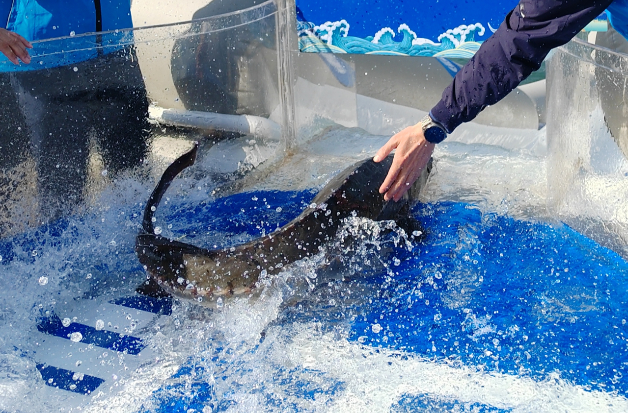 这些年,科研人员建设了国内最大的中华鲟保护基地,保育着规模最大的子二代中华鲟种群梯队;持续监测并修复葛洲坝水电站下游自然产卵场,为野生中华鲟保留适宜的“产床”;利用声呐标记与卫星追踪技术,探索中华鲟神秘的海洋生活史。这些全方位的研究保护,以期实现中华鲟不仅能“生得下来”,更能“回归长江,游向大海”的心愿。