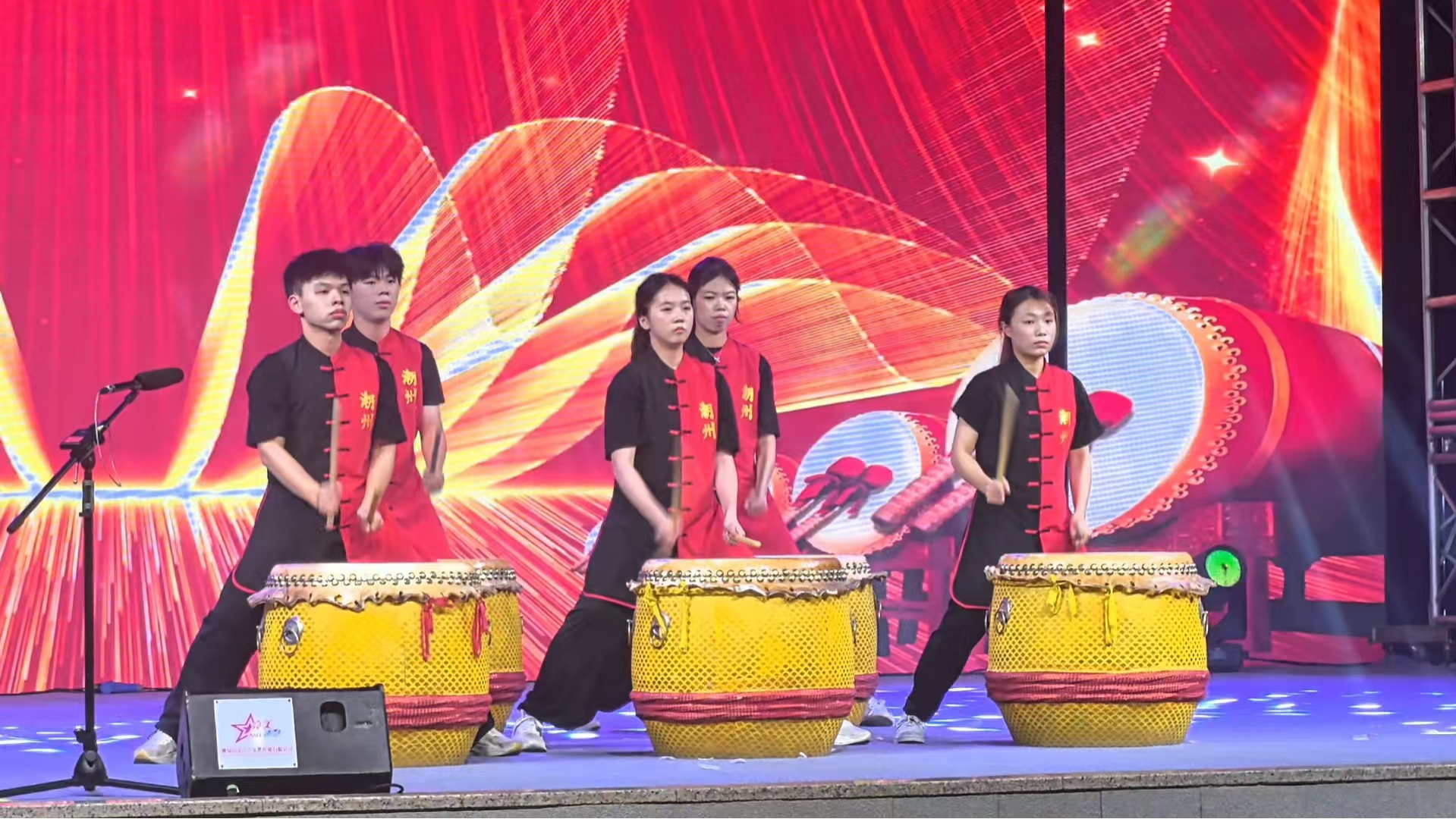 悠扬的戏曲抚慰人心,隆隆的鼓声带来欣喜,一群大学生随后表演了二十四节令鼓,这是一种广东狮鼓的创新表演形式。“高中时我们就接触了二十四节令鼓,第一次看到这种演出时就被它的气势震撼到,到现在为止已经打了四年鼓,因为喜欢,即使毕业了我们也常聚在一起打鼓。”郭楷帆说。