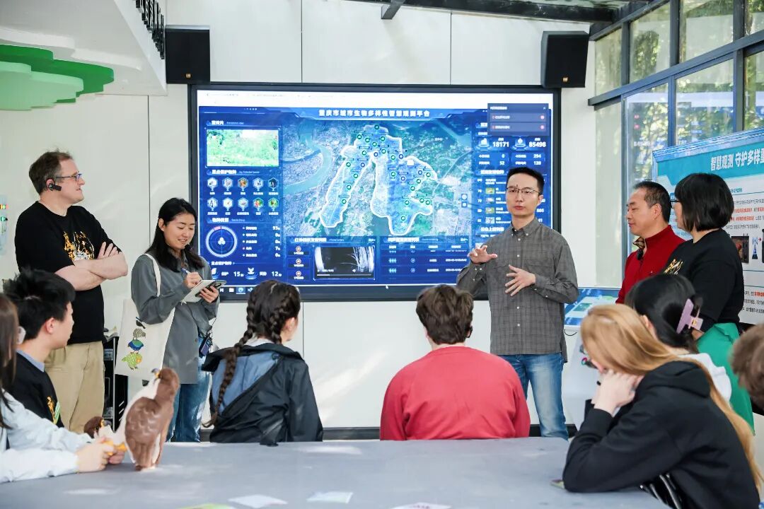 黄河清在重庆市城市生物多样性智慧观测站讲解“鹰飞之城”的情况。重庆市生态环境局供图