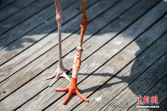 团队此前尝试过多种方案,但早期产品大多只有支撑作用,涉水和耐磨性能不足,尤其在东方白鹳飞行落地时容易产生明显顿挫感。此次使用的“机械假肢”加入了小型减震装置,模拟鸟类足部着地时的缓冲与回弹,以减少假肢连接部位受到的冲击。