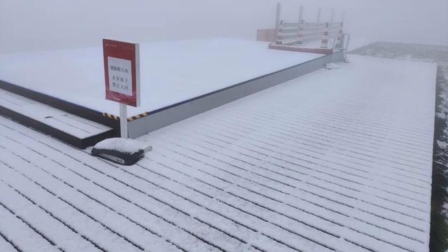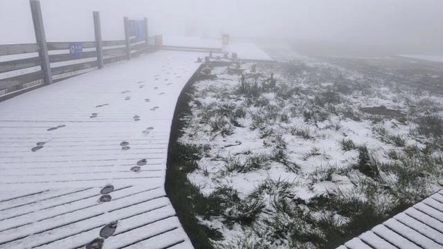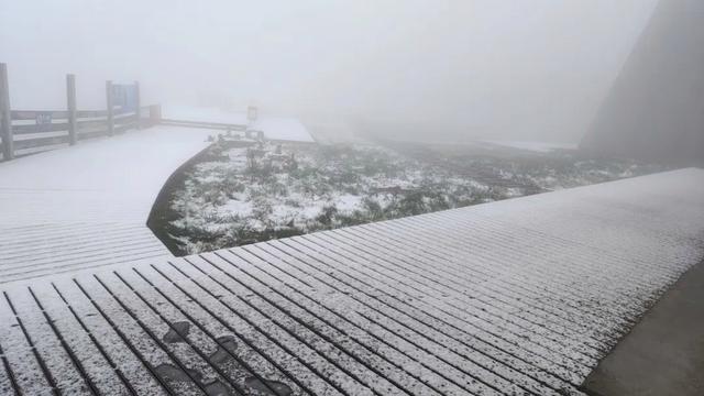 10月7日夜间,延庆区出现小雨天气,在高海拔地区,雨滴化为片片白雪。10月8日8时,海陀山巅、延庆奥林匹克园区山顶出发区已覆盖上了一层薄雪,仿佛披上一层白纱。