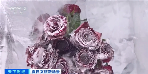 冰雪大世界用的冰都是天然冰,因为天然冰冰清玉洁、晶莹剔透,而人造冰就像从自家冰箱取出来的冰块,难免发白发乌。但这面浪漫的玫瑰花墙,想把玫瑰花雕进冰块里,显然用的是人造冰,但这里人造冰的冰块同样熠熠生辉。